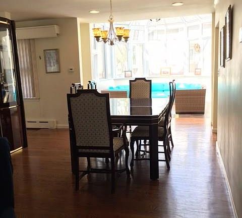 BEST LOCATION IN TOWN 3 LOTS- 40 & 44 Leslie Ave are included in the sale Open-plan ranch with expanded central kitchen and good-sized rooms. Eat-in-kitchen with lots of cabinets ,swing-out pantry and a large island with dishwasher and 2 sinks. Great spacial flow. Brand new multi-unit central AC system and brand new roof. Unique heated/air conditioned sun-room! Clean unfinished basement, length of the house and high ceilings. One car garage. Owner is a licensed Realtor. This property consists of 3 lots to create a spacious private yard . Close to train/houses of worship.