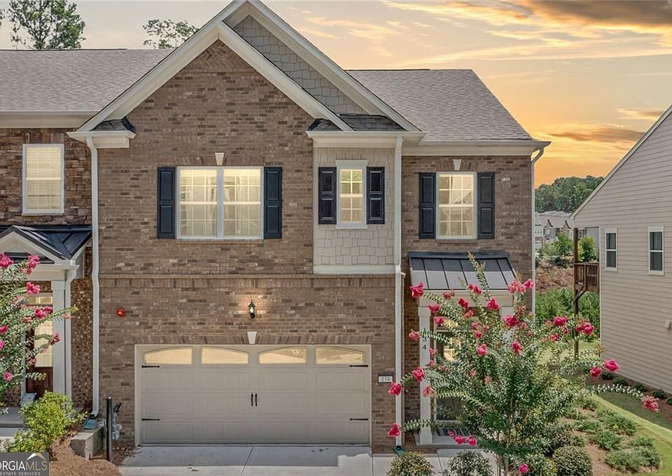 Modern design, natural light, and all the right upgrades, this 2023 build delivers the feel of new construction without the wait. From the moment you walk in, the open layout feels effortless. The kitchen features quartz counters, herringbone tile backsplash, stainless steel appliances, and a four-seat island that's made for everything from casual breakfasts to evening wine with friends. Wide-plank floors run throughout the main level, connecting the living and dining spaces with clean lines and warm tones. Custom automatic blinds add a seamless, high-end touch to the main living areas. The living area is styled with oversized windows and a painted brick fireplace flanked by custom shiplap accents, bringing both character and comfort. French doors lead out to a fenced backyard with wooded views and no direct neighbors behind you. Upstairs, the primary suite goes beyond the basics with a private sitting area or office nook, two walk-in closets, and a bathroom that feels like a retreat. Think dual vanities, marble-look tile, a soaking tub, and a glass-enclosed shower. Tucked in a well-maintained community just minutes from Highway 92 and I-575, this home has a smart design with everyday functionality. Stylish, practical, and truly move-in ready.