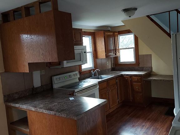 Eight hundred square foot two-bedroom one bath Home. Both bedrooms upstairs. Livingroom, kitchen and bathroom downstairs. Washer and dryer in the kitchen. Oil forced air heat. Well water. Newer laminate floors downstairs. Double thermo-pane windows throughout. Double wide driveway will park 5 cars. Metal roof over part of driveway and back patio of house. Storage shed behind house for tenants use. Landlord mows the grass, and hauls garbage to the dump. Tennant pays oil and electric bills. Tenant responsible for snow removal. Nonsmoker property. Rent due first of every month. first month last month and security deposit required up front. One year lease required.