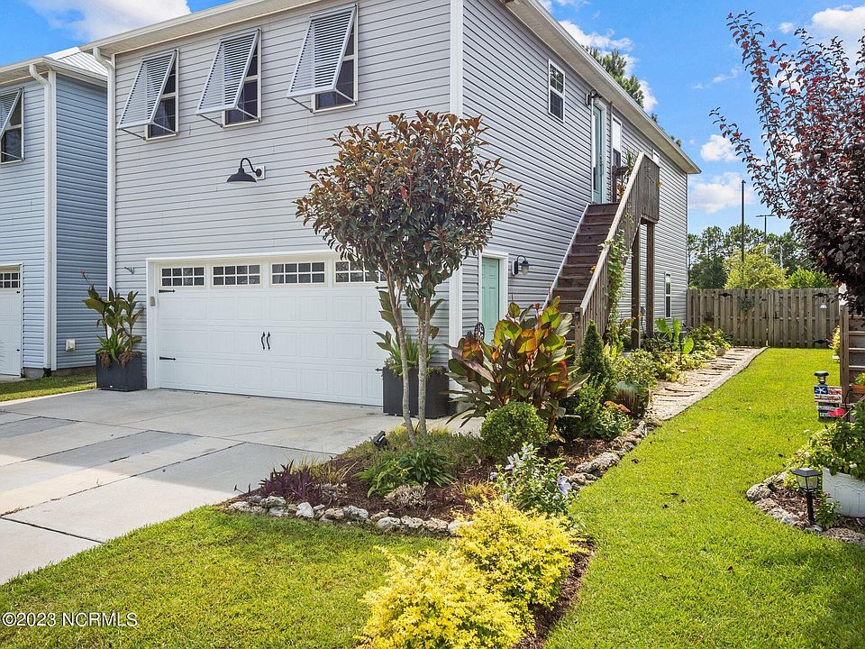 Discover the epitome of coastal living at 134 B James Avenue, a multi-level gem nestled in the highly desired Bryans Court community. This exceptional property offers not only an enviable location but also an array of thoughtful features that cater to both comfort and convenience. Situated conveniently close to local shops, restaurants, the Topsail School District, Surf City Community Center, and the award-winning beaches of Topsail Island, this home effortlessly combines the tranquility of suburban life with easy access to essential amenities and recreational options. Step into the upper level, where every detail has been meticulously designed to create an inviting and functional living space. The kitchen, illuminated by pendant lighting, boasts a 7-foot eat-in breakfast bar, providing the perfect setting for casual meals. Crisp white cabinets, a stainless steel 4-burner flat-top stove with hood vent, and a dual basin stainless steel sink with a Pfister motion-sensor faucet contribute to a contemporary and stylish atmosphere. A pantry ensures ample storage, while 8-inch shiplap adds a touch of coastal charm. Adjacent, the dining area features an elegant chandelier and a built-in corner bench, perfectly complementing the chalk paint accent wall. The living room welcomes you with 7-inch plank LVP flooring, enhanced by 5 1/2-inch craftsman baseboards and an Oak Plus electric fireplace, creating a cozy ambiance. The Master Suite, a true retreat, overlooks the backyard and offers a walk-in closet concealed behind a barn door. Behind another barn door, the ensuite bathroom awaits, featuring a dual elevated vanity, rose gold Allen Roth faucets, and a shiplap accent wall. The 12 x 6 tiled shower with a rain shower head and glass door completes this spa-like haven. The upper level also houses a secondary Master Suite with an attached full bath, a guest bedroom, and a convenient half bathroom with laundry facilities. Wooden stair treads lead to the lower level, where a world of comfort unfolds. The open living area features 9-foot ceilings, a reading nook, and a full guest bathroom, making it a versatile space for relaxation and entertainment. A 5-foot sliding door beckons you to the private, well-landscaped, and fenced-in yard, inviting you to enjoy the outdoors. For added convenience, a 2-car garage offers shelter for your vehicles and extra storage space, completing this remarkable property. Contributing further to the allure of this remarkable home is its commitment to sustainable living. Equipped with solar panels, this residence harnesses the power of the sun to significantly reduce its carbon footprint and energy costs. Imagine the freedom of enjoying last month's electric bill at only $50, a testament to the modern eco-friendly features integrated seamlessly into the property. Embrace the coastal lifestyle and seize the opportunity to own this meticulously crafted home at 134 B James Avenue. Schedule a private tour today and experience the harmonious blend of design, functionality, and location that this residence has to offer.