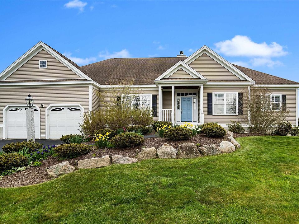 CONTEMPORARY SPLENDOR! IDYLLIC MAINTENANCE-FREE LIVING IS YOURS IN THIS LIGHT AND BRIGHT OPEN CONCEPT HOME! Welcome to single level living and stunning spaces in highly sought after Windstone of Bedford. Thoughtfully situated on an elevated lot graced with mature professional landscaping, a gently curved walkway leads to a gracious covered entry. Gleaming hardwood floors, neutral interiors and crisp white millwork create a warm ambiance. Soft natural light invites you to unwind in the living room. Preparing meals will be a delight in the chef’s kitchen where guests will pull up a seat at the granite counter for conversation and appetizers before casual meals in the breakfast area or more formal affairs in the dining room. You’ll love the sunroom for morning coffee and colorful sunrises over nearby hills as you appreciate seasonal flowering trees and shrubs or take things alfresco to the deck. Plan your next day’s adventure just through French doors in the home office that enjoys pretty front garden views. At day’s end, retreat to the first floor primary with ensuite spa bath and walk-in closet. Rest easy knowing a second bedroom for guests is discreetly placed in another wing. Downstairs another bedroom and full bath provide fabulous flex space for ease of living and invite the gang over to screen a favorite movie in the theater room. The best part? Leave snow removal, landscaping and exterior maintenance to the HOA. RARELY AVAILABLE…COME AND SEE WHY! Showings begin May 23