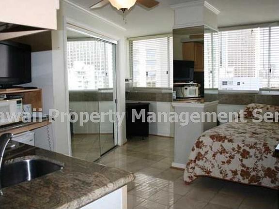 Absolutely beautiful studio/1b at the Waikiki Grand on the east end of Waikiki. Located on Kapahulu Ave unit is in excellent condition and walking distance to the beach! 203 sq ft, beautifully remodeled bathroom, and cute kitchen area. Shared sundeck offers beautiful ocean views! No parking, free street parking east of zoo. All util included, even local telephone & internet! No pets - ! Call Lauren @ 808-692-2388 Available June 1st