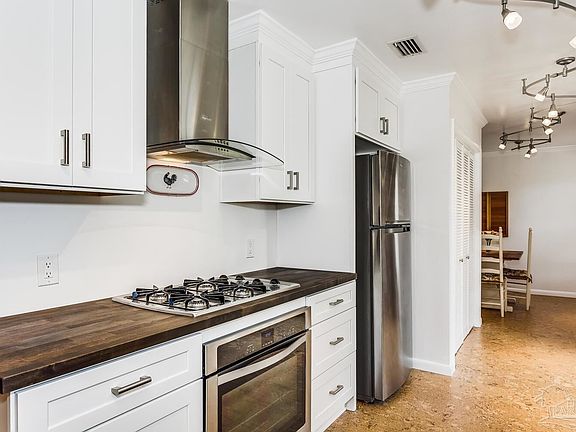 Fabulous home located in CORDOVA PARK! This ALL BRICK beauty features 3 BR & 2 BA's. Charming from the moment you drive up, the yard is fully landscaped with NEWLY PLANTED BEDS in front of the home. The 5'x30' front porch welcomes you in for a cool drink & shade to rock the afternoons away. The exterior is a direct reflection of the detailed maintenance you will find inside. Entering you will quickly realize there is nothing to do but move in! The front room area w/ its beautiful original HARDWOOD FLOORS serve as a formal living & dining room. There are ample windows that flood these rooms w/ natural light. The formal dining room features beautiful built ins to display your fine China w/ cabinets below for storage. Opposite the front rooms is a fabulous new kitchen & family room that will be the center of day-to-day living! The BRAND NEW KITCHEN will Wow you!! Kitchen features include solid wood cabinets w/ soft close doors & dovetail drawers, FARMHOUSE SINK, CORK FLOORS, solid wood countertops, NEW LIGHTING, industrial style built-in's, Frigidaire & Whirlpool STAINLESS APPLIANCES to include new range hood & GAS COOKTOP! The laundry closet is also located off the kitchen & double doors let you out to a NEW 16'x30' DECK. The family room has its own special touches with a wall-to-wall brick accent wall w/WOOD BURNING FIREPLACE, stained bead board ceiling, large windows w/ custom plantation shutters & a door that lets you out to the deck. All bedrooms are located on the west wing of the home. The owner's suite is spacious & offers a newly renovated bath w/ CUSTOM TILED SHOWER, new tiled floors, NEW VANITY & all new fixtures. There are two additional bedrooms w/ spacious closets for plenty of storage. The hall bath features a new vanity & paint offering updates to its classic style. Add'l features of this home includes irrigation for the lawn, updated wiring & plumbing, rebuild NWF w/ hurricane shutters & wind loaded garage doors, solid wood interior doors & 2021 roof.