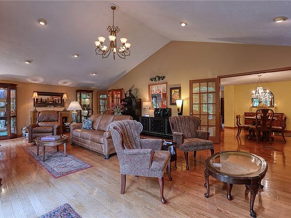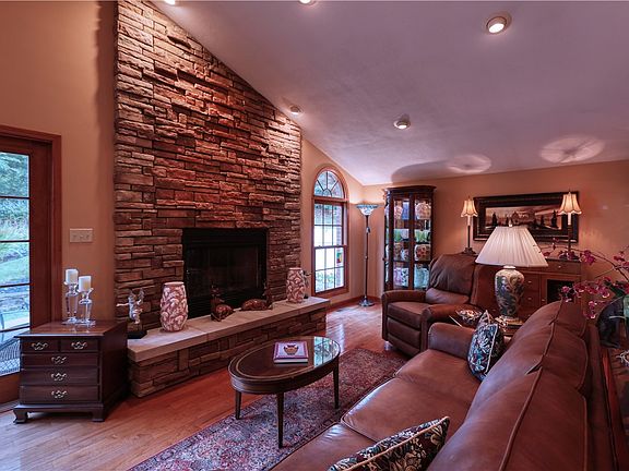 This 3 bedroom, 3 1/2 bath home in the Central Valley SD has a fantastic great room with floor to ceiling stone fireplace, beautiful palladium windows, gleaming hardwood floors, cathedral ceiling w custom chandelier & a door opening to the back patio & garden. This room is entertainment central & is open to the dining room & kitchen. The updated eat-in kitchen has a Parisian flair. The 2 upstairs baths are new, the master has a great walk-in shower! There are 2130 sq. ft. on the 1st & 2nd floors plus an additional 1300 sq. ft. in the lower level, including a game rm, full bath, laundry rm, storage areas & a bonus room w outside entrance for a workshop, mancave, exercise rm, etc. There's ample space for a guest room or office in this level. The 2-car attached garage is deep; the outdoor storage barn is huge, electrified & included in the sale. The professionally designed back garden adds nature's beauty & serenity to the home. This home is not a drive by, you must see it for yourself!