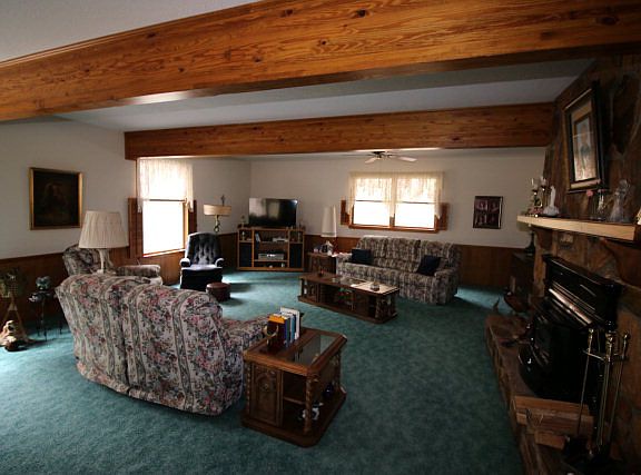 Spacious two story home with a full basement, 3 BR 2 1/2 BA, wood burning fireplace insert.Contains game room, covered porch, large garage, on 15.5 acres with stream, pond and garden space, lots of privacy yet close to shopping. This is a great home with at a great price!