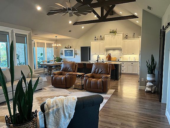 By owner, 325-721-6000. Welcome to your dream home! This stunning 3 bedroom, 2 and a half bath beauty boast a flex room, an office or formal dining room, an open kitchen and living area that features vaulted ceilings with wood beams, creating a warm and inviting atmosphere. Floor to ceiling windows in the living and dining area flood the space with natural light, while granite countertops, an oversized pantry, and stainless-steel appliances that includes an oven and convection microwave combo, make cooking a breeze. Unwind in the spacious main bedroom with a large closet and ensuite bathroom with walk in shower and ample storage. Step outside to your own oasis with a large back porch, a 30 x 40 shop complete with a 40' patio and a bar-b-que area perfect for hosting outdoor gatherings. This home is fully equipped with foam insulation, a security system, a sprinkler system front and back, two hot water heaters and three car, oversized garage for added convenience and peace of mind. The beautifully landscaped front and back yard complete this picture-perfect property. Don't miss your chance to make this house your forever home - schedule a showing today!