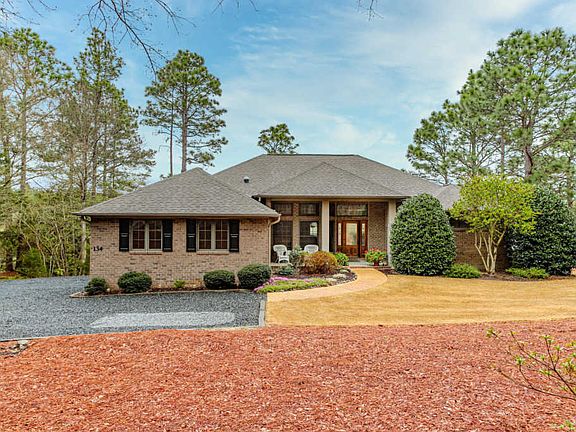 Beautiful all-brick waterfront home in Seven Lakes South! Spectacular views from almost every room! Meticulously maintained single level home with hardwood floors, custom cabinets with pull-outs and high, smooth ceilings. 3 bedrooms plus den (could be 4th bedroom but septic permit is for 3-bedrooms) and 3 full baths. Large lower level workshop/storage area! Formal dining, living room, Carolina room, Spacious kitchen with breakfast bar, breakfast nook and keeping room. Split bedrooms. Smooth ceilings. All appliances convey. Irrigation from lake. West End Schools! Enjoy the amenities of Seven Lakes--several lakes, marinas, playgrounds, basketball, tennis and bocce courts, swimming pool, horses and more!