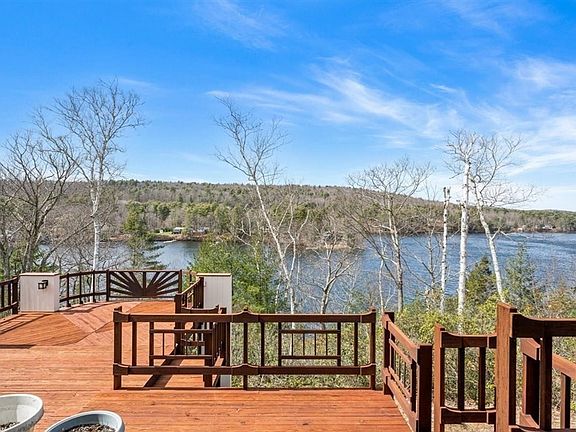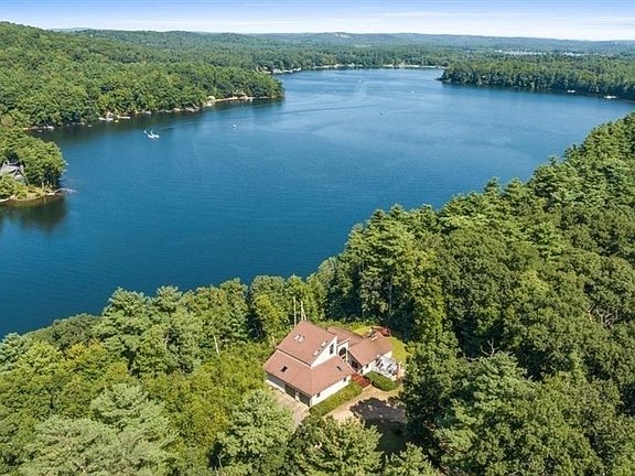 Private waterfront hideaway best describes this home home presenting a picturesque ensemble of original wood detailing. 365 feet of waterfront on spring fed South Pond known for trout and bass fishing. Pegged hardwood flooring frames the enormous full wall brick fireplace built with eye level raised hearth. Sweeping views of the lake from the cathedral tongue and groove wood ceiling media room with custom heartwood bar and plenty of seating.The spiral wood staircase leads to the primary bedroom suite sited to enjoy the lakefront and hills of the surrounding towns. A 1500 square foot wrap around deck surrounds the home to enjoy private outdoor living at it's best. Minutes to the Mass Pike clover leaf leading to Interstate 84 and route 20. Come and enjoy what we have to offer. Sellers imagination has been realized.