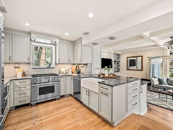 Renovated storybook Tudor in Newtonville on a beautiful side street will delight the most discerning buyer! The 2019 high-end kitchen renovation features Subzero, Wolf and Miele appliances with custom cabinetry and Azul Macaubas quartzite countertops, open to a step-down fireplaced family room with coffered ceiling and transom windows, offering direct access to the bluestone patio through French doors. There is a front-to-back living room with curved fireplace, dining room, and half bath on the first floor. Upstairs are 3 skylights, 2 balconies, 4 bedrooms, and 3 full bathrooms, including an oversized primary bedroom suite w/vaulted ceilings. New primary bath porcelain tile, rebuilt shower, new shower doors. Private and beautifully landscaped fenced-in back yard with fountain, Japanese maple, plum, and weeping cherry trees. Zoned speakers, zoned irrigation, wired ethernet, custom hardscaping w/2nd patio, exterior security cameras, Lutron lights, all new exterior doors. 1-car garage.