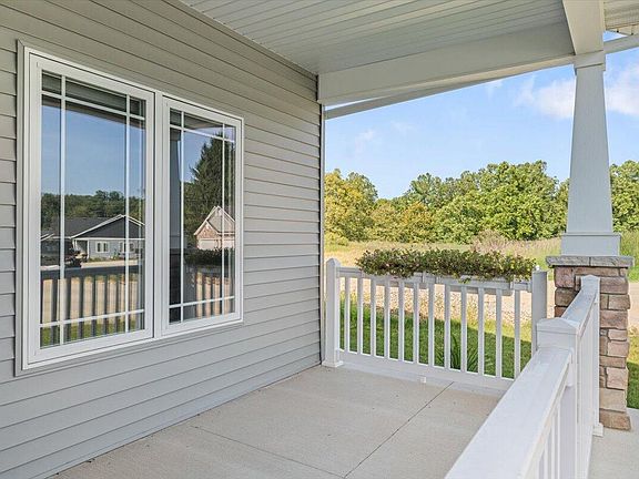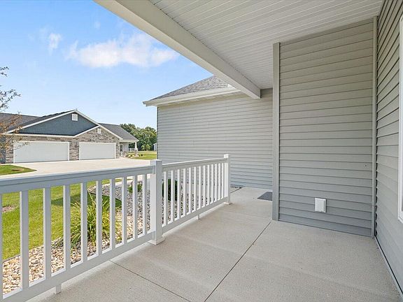 Enjoy CAREFREE CONDO living and be a part of The Courtyard at Lexington Pointe community. This beautifully UPGRADED 2 bedroom, 2 full bath condo includes a 2 car garage & main floor laundry. No need to part with all of your belongings as there is a full unfinished basement w/egress window that's plumbed for a full bath & offers plenty of storage space. Stunning kitchen has quartz counters, island w/seating, tiled backsplash, 2 pantries & stainless-steel appliances including a gas range. Living room features a gas log stone fireplace w/mantle. Slider door with remote control custom window blind leads you to a covered back patio w/railing & gate. Primary bedroom suite offers a gorgeous custom tiled shower with seat, dual sinks, large walk-in closet & large linen closet. Amount of closet space throughout is amazing! Second bedroom attaches to a full bath for convenience & privacy for overnight guests. That bathroom is also accessible from the hallway. Quartz counters in baths as well. Half door has been added at the top of the stairs leading to basement as well as a full door at bottom of basement stairs. Custom window blinds and luxury laminate flooring throughout. Covered front porch with railing is a relaxing space in addition to the back covered porch. No step entrance from garage and front porch. Television in living room is included along with all kitchen appliances and washer/dryer. Don't miss out on this stylish open concept move-in ready condo.