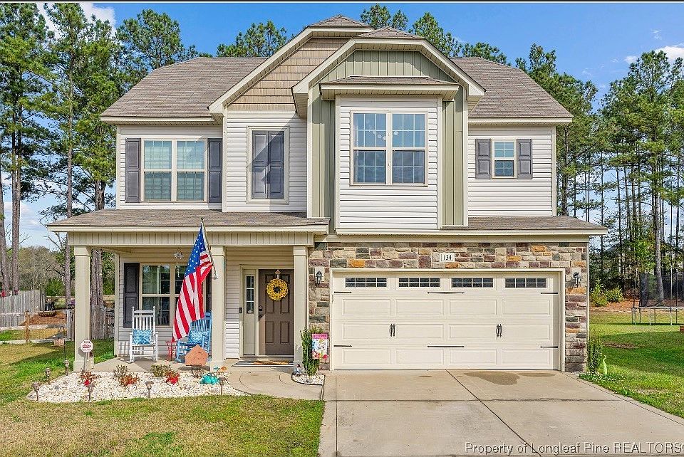 Welcome Home!! This stunning home sits on a quiet culdesac. Step into the foyer where you are greeted with hardwood flooring in your formal dining area. In the great room, you'll find an open air concept. Kitchen with Granite countertops, stainless appliances with plenty of cabinet space and a living room with cozy fireplace. Owners are gifting the surround sound and T.V. in the living room. All bedrooms are located upstairs. Oversized with large closets in each. Owners suite boasts a gorgeous bay window, bath with dual vanity sinks, garden tub and separate shower. Step out your back door into your HUGE private backyard. This home has fresh paint throughout. Located near great schools, shopping and central to Fort Bragg and Raleigh. All it needs is New Owners to call it home.