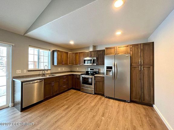 2017 built ranch duplex in the heart of Soldotna & situated in a private setting. 2 bed 2 bath + office nook with an attached heated garage! Custom finishes throughout include high-end vinyl plank flooring, solid wood custom cabinetry, solid surface counters, stainless steel appliances & in floor heat. $2200 plus tenant covers electric and owners provides gas, city water / sewer, snow removal, landscaping & trash. Available 03/01/2025 for a 12 month lease. Small dog may be considered on approval. No smoking of any kind.