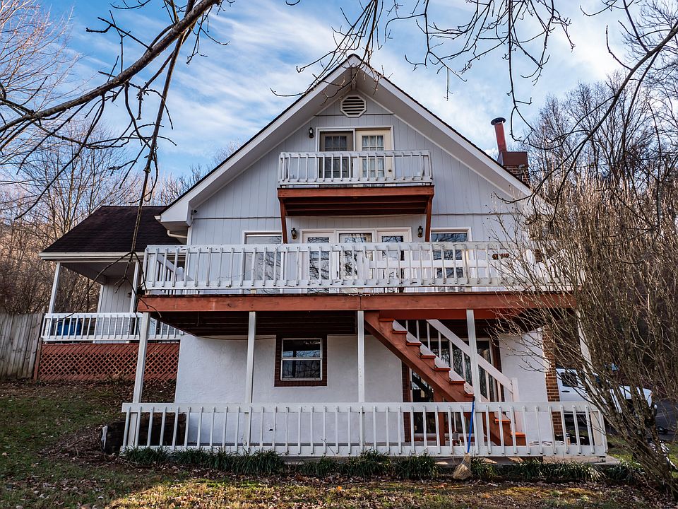 BREATHTAKING VIEWS OF BAY & HOLSTON Mountains in the BUFFALO MOUNTAIN AREA. This 3 bedroom 1 full bath and 2 half bath A-Frame home is just what you've been looking for. Features include 2 wood burning fireplaces with wood insert and new chimney liner. Large living room with hardwood floors, eat-in kitchen. Washer/dryer hookups on main and in basement. Main level master with 2 additional bedrooms upstairs. Bathrooms have Italian tile and slate flooring with vanities and tub. Finished room with fireplace and laundry downstairs. Outside features carport w/storage shed, 3 decks, covered porch & concrete patio. Fenced in yard, mature fruit trees, blueberry bushes and established grapevine. Country setting with City convenience located just minutes from I-26, VA & Medical Center Hospital and Colleges. Owners have explained that the driveway is not public nor is it shared. Neighbors have used it before for access with owners permission. The information herein contained has been pulled from the courthouse retrieval system and multiple listing service. Buyer/buyers agent to verify all information and is subject to errors and omissions.