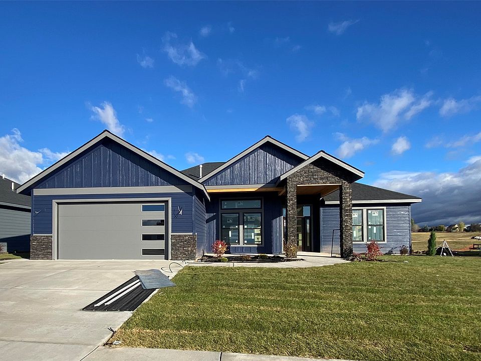 New Construction with Big Mountain Views in West View Estates, Kalispell Welcome to this stunning 2,082 sq ft new construction home built by Elwood Custom Homes located in Phase 7 of West View Estates one of Kalispell’s most desirable neighborhoods quality craftsmanship throughout this thoughtfully designed residence This home features 3 spacious bedrooms & 2 full bathrooms Custom cabinets and high-end finishes Durable and stylish LVT flooring Luxurious tiled walk-in shower in the primary suite Soaring vaulted ceilings and an open-concept layout Cozy rock gas fireplace in the great room Fully landscaped yard with underground sprinkler system Central A/C for year-round comfort Perfectly priced to sell this home offers modern amenities scenic views and quality construction all in a peaceful neighborhood close to everything Kalispell has to offer walking distance to Glacier High School.
