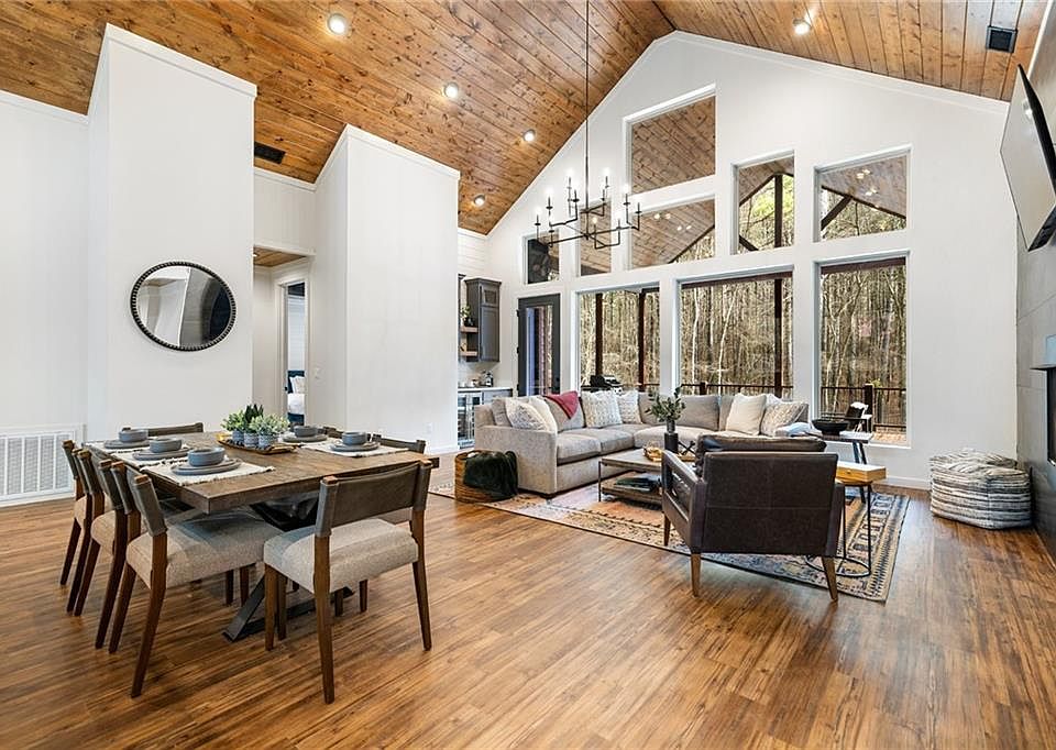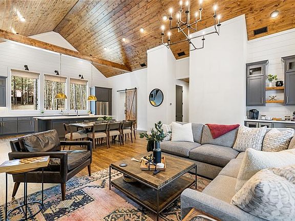 This beautiful modern rustic design has anything and everything you can ask for in a second home, STR getaway! From the spacious vaulted ceilings that create an airy flow throughout the house to the separate bunk house with a storage garage, this one is like no other! Take time to enjoy the built in sauna in the master bathroom or slip away to the outdoor hot tub and relax under the stars! Enter the from front door, shed your boots and hang your outter gear on the entry cubby and make yourself at home in this cozy, well planned home away from home. The exterior rear deck is also very spacious for large family entertainment. On an oversized lot, This is One you will not want to miss! Schedule your showing today!