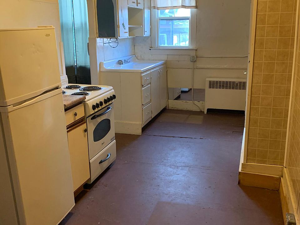 1 large Bedroom/living, & Kitchen; Heat, hot water, & lights included; 1st flr, coin-operated laundry in building. $595/mo, plus security deposit of $595 No Pets Please call during normal business hours (8-5)