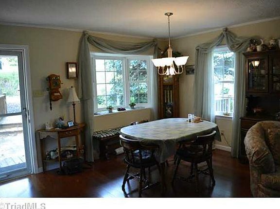 Adorable, move in ready Surry County cottage sitting on a beautifully landscaped 1.2 acre lot with a creek! The home features an open floor plan on the main level with gleaming hardwood flooring and beautiful stone fireplace! Main level master bedroom and laundry. Nice den and office downstairs expand the living space. Screened porch and large deck for outdoor enjoyment. Other features include 2 car carport, metal roof, replacement windows, 2012 heat pump and storage building.