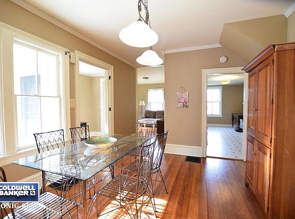 Victorian home ready to call home. Many recent updates including light fixtures, refrigerator, washer, dryer, water heater, and bathroom remodeling. Off the front porch you enter into the dining room with crown molding, built in cabinet, hardwood floors and accents to walls and windows. Hardwood in the living room with a front bump out for a sitting area. 1st floor laundry, half bathroom, and kitchen with access to back porch and basement. Upstairs features full bathroom and three bedrooms with hardwood floors and walk in closets. Detached two car garage. Short team lease available.