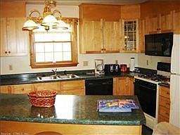 Large kitchen with island, cathedral ceiling and skylight. Sliders to rear deck. 1st floor mater. Fireplace in living room. Central vac. Quiet back road. Easy access to routes 6 and 169.