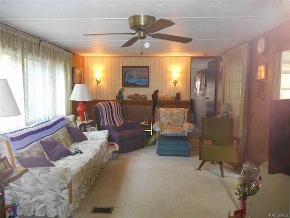 3/2 Mobile home with enclosed and open porches. Detached carport on 0.38 acre lot. Close to schools, shopping and just minutes from the Gulf of Mexico and Lake Rousseau. This home is super clean, has small workshop and comes totally furnished with tools and all. Great Palm tree garden in fenced, back yard. Perfect for your winter home or weekend retreat.