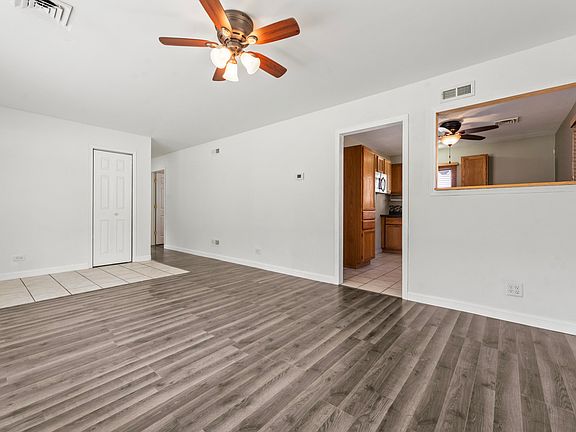 Welcome to this charming 3 bedroom, 1 bath RANCH home situated perfectly on a nice sized lot in a tranquil neighborhood in Park Forest across from the Thorn Creek Woods Nature Preserve and walking trails. You will never have neighbors in front of you. Step inside and you are greeted by the spacious and inviting living room with updated luxury vinyl flooring featuring a large picture window that fills the room with natural light. The open feel layout seamlessly connects the living room to the eat-in kitchen with ample cabinet and countertop space, panty and tile flooring. The large laundry room includes a utility sink, storage cabinets and a door to access the backyard. Down the hallway, you'll find 3 cozy bedrooms, all with luxury vinyl flooring and ceiling fans with a convenient full bathroom in the hallway with a tub/shower. The huge backyard gives you access to the detached 2.5 car garage with A/C, a BONUS storage room in the back PLUS full storage space above! There is no shortage of storage space in this home. The fenced in backyard provides excellent and secure space for kids and pets to play. The paver patio space is ideal for enjoying your morning cup of coffee. Ages are approximate - HVAC - 5 years, Water Heater - 1 year, Roof, Gutters and Downspouts - 8 years old. Insulation was added to the attic about 5 years ago. Such a great location! Convenient access to University Park and Matteson Train Stations, I-57, I-80, I-294 making your commute to the City a breeze! Close to schools, parks, shopping, dining, entertainment and more! Schedule your showing today!!