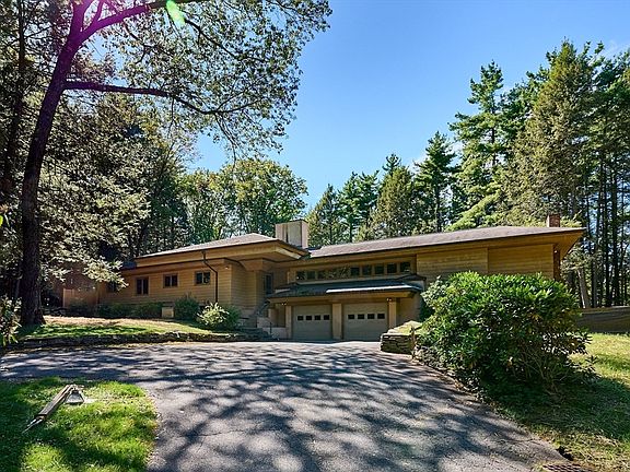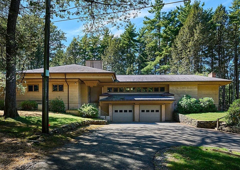 Your Family Retreat: architect designed, this substantial 3,695 SF Executive Ranch w/ in-law quarters has well served the multi-generational needs of the family since 1953. The entire property comprising 11.51 wooded acres enjoys complete privacy in a serene setting on a clearing at the top of a paved driveway. Parking is easy on the circular drive in front of the oversized 2-car garage. An expansive main floor has practical layout: the light-filled LR w/ fireplace & 4-season porch + DR w/ built-ins + kitchen w/ pantry are central; 3-bedrms & 1-full bath w/ cedar closet & built-ins are in the right wing; on the left are Fam Rm + 4th bedroom +office + mudrm + 3/4 bath. A plethora of windows bring light in from every direction. From the LR/DR peer thru the windows of the attd 4-season, sunporch to backyard. The part. finished, in-law space has its own entry & includes bedroom + windowed sitting rm + 3/4 bath. Property is close to UMASS Amherst & travel routes, 47,116 & 91. 'As is' sale.