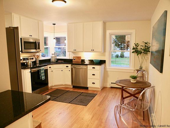 Totally updated Cape with fresh and sophisticated current style in quiet established neighborhood. Gorgeous kitchen with premium white shaker cabinets, granite countertops and stainless appliances. Open living/dining room with classic wood burning brick fireplace and 5 windows. Beautiful solid oak floors on entire main level and solid pine floors in both 2fl BRS, all masterfully refinished. Large first floor bedroom along with extra large like-new full bath on first floor to serve this unusually gracious first floor living option. Second floor bedrooms are both also large with alcoves and full like-new hall bath. The list of new or newer updates & upgrades goes on and on: architectural shingle roof, premium efficient Burnham boiler, high performance exterior doors, neutral color paint throughout, hardware and fixtures, 200 amp electric, 1000 gallon septic tank, 3-car width asphalt driveway newly sealed. In addition to the convenient attached garage is a large utility/mud room. Full basement under Cape portion of house is clean and neat as a pin. Large level yard with newly mulched landscape beds. This gem is like new and needs nothing.