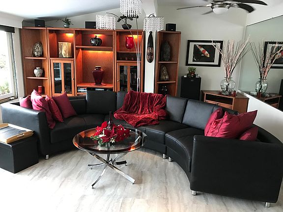 Spectacular views, Fully furnished, move-in ready, penthouse-style living. Beautifully styled, 2nd story 1 bedroom/bath apartment. French doors to great deck, Covered hot tub, gas fireplace, bbq and outdoor furniture. Lovely, all amenities kitchen with heartwood cherry hardwood floors. Huge living room with gas fireplace and semi-circular leather couch and a full wall of windows to enjoy the ships, marina, river and mountain. Very large bedroom with king size bed, nice big closet. Bathroom with shower and laundry. Office area, dining room. Exceptional light fixtures throughout. Sony stereo in entertainment center. This is a must see apartment, perfect for executive or couple. The building is very quiet, all respectful, mature, long-term tenants. Great neighborhood, walking distance to St Helens riverfront restaurants and entertainment. 32 miles to NW PDX. Tenant pays partial water, sewer, garbage. No pets, no smoking. One off-street parking spot. Tenant pays internet, gas and electric. 2nd floor apartment with stairs. Historic home so noise can be an issue. Owner lives on site. Very quiet, mature and respectful co-tenants in building but not noise tolerant. Exceptional location, apartment and accommodation opportunity for the right couple or single looking for move-in ready luxury and penthouse-style living.