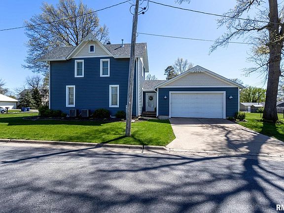 This beautiful, charming home was built in 1890. You will enjoy vintage charm with many updates throughout. The first thing you will notice is the gorgeous landscaping around the large fenced in yard. Experience the composite deck out back with a covered gazebo. The new roof and siding go along with details to keep the vintage look alive. This 3-bedroom, 2 full bathrooms has many high-end finishes, including quartz countertops, new kitchen appliances, luxury vinyl plank flooring, electric fireplace, and 9' ceilings. Large 2 car garage with attic storage and large climate-controlled room off the back side. This beautiful property offers a double, corner lot, giving plenty of room to have fun or relax & unwind. As well as allowing you the convenience of walking to North Scott schools, YMCA, library, Sheridan Meadows Park, Eldridge bike trail, restaurants, and more. The design finishes are unparalleled as it is updated modern, but keeping with its historical roots. Call today for a private showing.