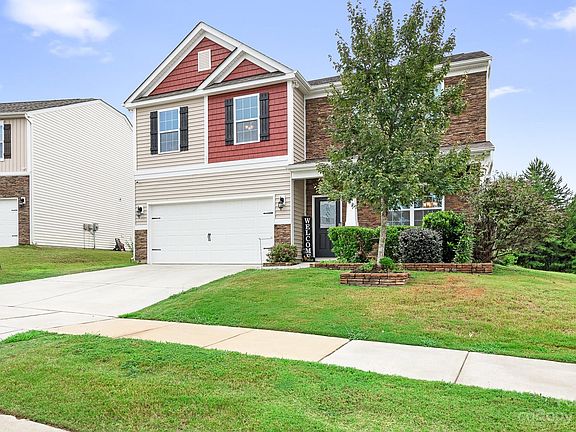 Beautiful home in sought after Kensington Village! This 2523 SQ FT home features 5 bedrooms and 3 full baths! Guest bedroom/Office and full bath on main level. Kitchen boasts granite countertops, recess lighting, subway tile back splash, stainless steel appliances and gas range! Refrigerator conveys with property! 9 ft. ceilings on first floor with Fireplace and open floor plan for entertaining. Beautiful custom built coffee bar/buffet in dining area! Spacious 19'x18' primary bedroom on upper level boasts a cathedral ceiling. Primary bathroom includes a dual sink vanity, walk-in shower and a large walk-in closet. Formal Dining Room with wainscoting & custom lighting! Laundry Room is located on the upper level. Large backyard and patio space for outdoor enjoyment! 2 car garage with work bench and shelving. The neighborhood is conveniently located near the Walmart Neighborhood Grocery and minutes to downtown Mooresville to enjoy shopping, restaurants and activities.