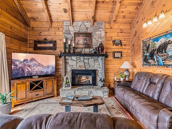 Located in the gated community of Linville Mountain Acres, you will find this beautiful log cabin with breathtaking mountain views. A successful short term rental and a beloved private getaway for it's owners this property checks all the boxes. Located only an hour from Asheville, 45 minutes to Boone, and 10 minutes from Linville Falls & the Blue Ridge Parkway there are no shortage of activities to enjoy. The main level features an updated kitchen with granite countertops, large windows showcasing the amazing view, full bedroom & bath, bonus room, and cozy fireplace. The primary bedroom & bath are located in the loft. Downstairs you have a second bonus room, entertaining space, laundry, and full bath. The double decks provide plenty of space for everyone to relax. Parking and access to both levels is easy with two driveways. Many recent updates including new HVAC & hot water heater, stained & painted exterior, and much more. Don't miss out on these views. Schedule your showing today!