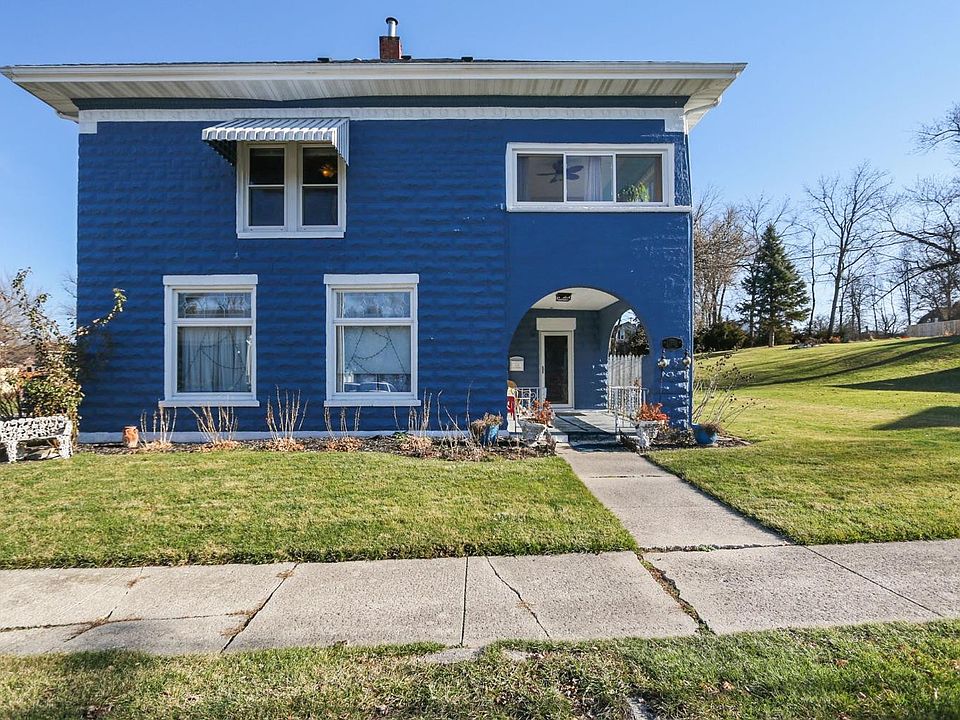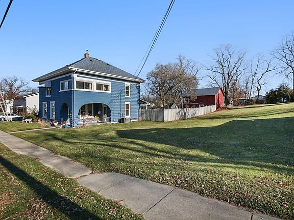 You'll need to check out this spectacular home in downtown Lowell! You'll walk in and immediately feel the warmth of the home with the solid Tigerwood floors that surrounded by marble as you walk into the living room. The charm throughout includes plantation shutters in the living room and a wood burning stove to keep you warm on the cool nights. The galley kitchen includes a great eat in area and is located right off the back yard. At the opposite side of the living room, you'll find the 4th bedroom that includes its own entrance. The beautiful dining room (or separate living room) includes a butlers bar. Laundry & a 1/2 bath on main level too! Moving upstairs you'll find a large primary bedroom with a cedar walk-in closet and an entrance to the private sun room. Next door is a bedroom with a 1/2 bath and then down the hall is the final large bedroom. Upstairs also has a full bath. Outside on the large lot is a great 2 story pole barn / garage perfect for projects! New windows!