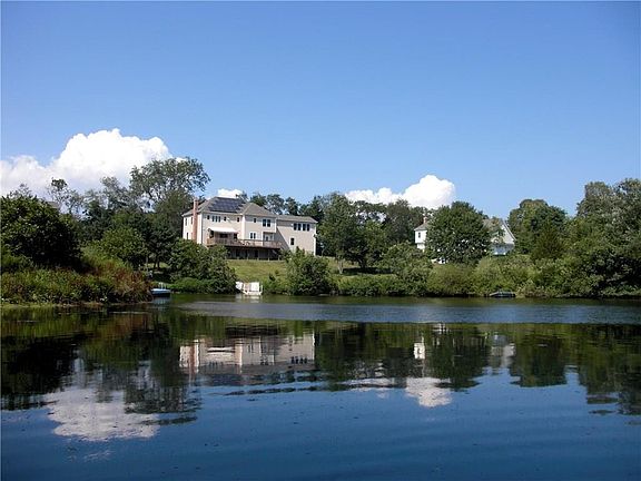If you are looking for an oasis of calm, this is truly a home to embrace. Custom designed and upgraded throughout, this gorgeous 4 BR Colonial boasts a private dock on an idyllic pond in charming Guilford. Perfect for entertaining inside and out, the expansive deck with patio below allows for sweeping views. Thoughtful consideration was given to the open floorplan with a striking kitchen and walk-in pantry. All the goodies for the discerning chef! A spacious multiuse bonus room takes full advantage of the pond view and offers a personal sauna for total Zen. Energy efficient, the solar panels produces ample electricity for energy conservation and the whole house generator makes winter worry free. But let's not forget fun! The home theater with comfort stadium seating will delight you, family, and friends alike. Truly this special and delightful home awaits the discerning buyer who is looking for something gracious yet playful. A respite from today's rat race, conveniently close to the Guilford Green and at the same time only minutes from New Haven/Yale and all it offers.
