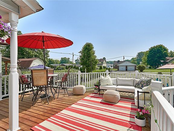 Simply ‘zuperb’ in Zelienople where quaint meets hip! Jaunt into an award-winning town for a morning walk, or stroll for an evening out where casual or fine dining, entertainment, a vibrant pub & shopping scene awaits. THIS can be YOUR new lifestyle! As charming as its town, this awesome 3BR home w/inviting front porch sits on a quiet street & is enhanced by an extra large, flat lot ~ Bonus is extended parking. Outstanding remodeled kitchen completed in ’19 w/farmhouse vibe will be the true heart of your home ~ Custom handscraped shelves w/rustic hardware, farmhouse sink w/subway backsplash,island & black stainless appliance suite. Step out to an enormous 17x18’ deck overlooking a perfect yard! Main level new flooring ’19. Second level has 2 generous bedrooms w/overhead lighting. Stylish bath was taken “down to the studs” for a fabulous remodel in ‘20. Third level has spacious flex space for exercise, office, or media room & houses Bed #3. All appliances, plus W/D convey to new owner.