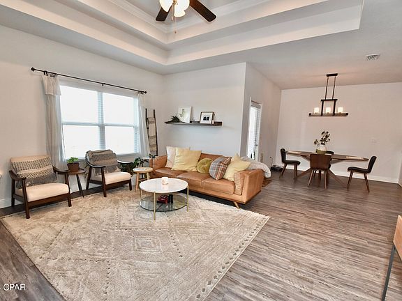 Welcome home to the Villages of Mill Bayou with a gorgeous community pool. This like-new home is centrally located to Tyndall AFB and the Naval base, as well as great public schools, to include two charter schools with one of them in walking distance, and only minutes to shopping and dining. This 4 BR 2 BA offers many custom features and is ready for your family. As you enter the home, you notice beautiful board and batten wall molding and custom lighting in the foyer.