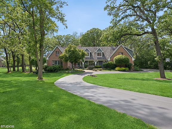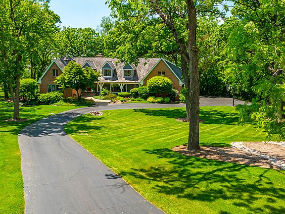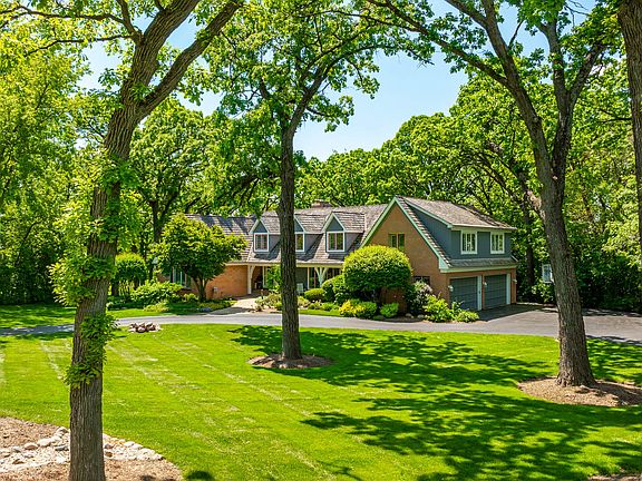 An intoxicating blend of timeless quality and dynamic appeal, this light-filled beauty overlooks Wynstone's 16th hole and towering trees. Fall in love with the Nantucket vibe: the gleaming white millwork, modern farmhouse doors, hardwood floors, white plantation shutters, dimensional ceilings, expansive deck, and stone patio & walk. Renovated kitchen features cinnamon glazed maple cabinets, immense island with seating and modern pendant lighting, commercial size stainless appliances, lit glass front display cabinetry, task lighting, and two-story dining area with granite faced fireplace and access to deck. Very versatile layout captures nature from every window. The central room on the main level boasts a wall of glass doors to deck providing spectacular views and raised hearth fireplace. The "not-your-average" study is filled with light and a wall of custom bookcases/ curio shelves. Immense family/ media room is the perfect spot for your comfiest furniture. Formal dining room with modern suspended vessel chandelier has wall of floor-to-ceiling windows with view of front wooded grounds. The work-of-art powder room has stacked stone wall detail, sophisticated lighting, and wide espresso vanity with full width white sink and open storage. The cleverly placed screened porch expands your living and entertainment options with its peaked ceiling, fan, and incredible views. Main level laundry center and drop zone includes stainless sink, folding/sorting counter, white cabinets, shelves, big closet, and stainless washer and dryer on pedestals. The heated four-car garage completes the main level. Venture up the turned staircase graced by an up-to-the-minute chandelier to the inviting loft with its wood beaded light and suspended window seat in wide dormer. The owners' suite has its own fireplace and private elevated deck. The high-back freestanding tub with carved nickel feet and exposed plumbing is perfect in the white wainscoted bathroom with vaulted ceilings, separate vanities, colossal clear glass enclosed shower, and triple windows. The 17' customized walk-in closet with window and two overhead lights is the exclamation point for this divine suite! Bedrooms 2 & 3 have SO much personality with their dramatic dimensions, alcoves, generous closets, and abundant lighting. (You can host the neighborhood for your next kid sleepover!) Bedroom 4 makes a great guest suite or Work From Home space. You will love the fun hall bath with its separate thick glass top vanities, wide alcove, separate shower, and water closet with tub and commode. Wait! There's more...The walkout lower level is finished with the same level of high-end quality as the rest of the house. There is a two-sided stacked stone fireplace and plenty of space for everyone. The gorgeous stone and granite bar with mosaic backsplash, Shaker cabinetry with lit display, and sink make parties a breeze. Loads of space for seating, eating, games, and hanging out. The exercise studio with full wall of closets could be a private in-law / nanny/ guest suite. There is a full bath with raised vessel sink as well as ample storage rooms. Wander out of the walkout to the private stone patio and walk set among the vibrant landscaping and majestic trees. Wynstone is the only Jack Nicklaus course in Illinois. Ask about a complimentary one-year social membership and private club tour. See floor plans in photo display and drop-down menu. This home will have you loving life all over again!