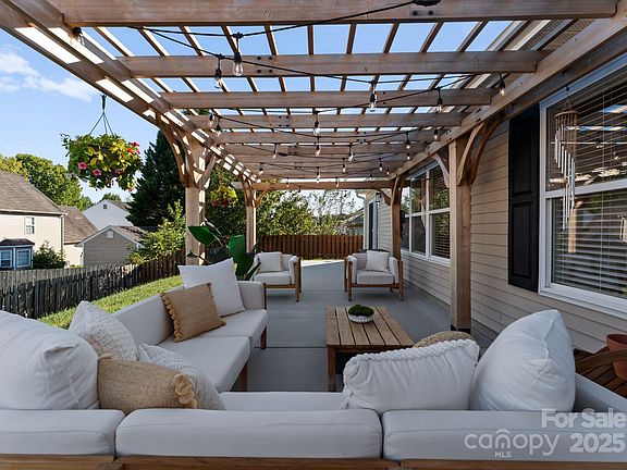 Experience refined style in this beautifully refreshed, move-in-ready home, perfectly situated just minutes from Mooresville's premier shopping, dining & entertainment! Flooded with tons of natural light, the freshly painted interiors offers a seamless blend of elegance & function. Main level features 3 spacious bedrooms, including a lavish primary suite designed as a private retreat. Spa-inspired bathroom showcases an oversized walk-in-shower with exquisite tilework, frameless glass enclosure & designer lighting that exudes sophistication. Freshly painted cabinetry & striking fixtures elevate the homes appeal while an expansive upstairs bonus room provides ideal space for work or leisure. Unwind next to the fireplace or outdoors beneath the grand pergola overlooking the serene backyard, the perfect backdrop for morning coffee or evening gatherings. Nestled in this highly sought after community where residents enjoy amenities including an expansive pool, walking trails, playground & a picturesque pond! Welcome to the lifestyle you deserve!