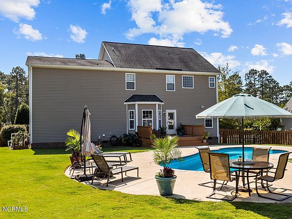 The backyard provides you with a deck opening onto your large pool patio and gorgeous back yard. The fiberglass saltwater pool was installed in 2020 and is operated by Hayward pool equipment. A pool heater is installed as well. A 10x20 shed provides ample storage.