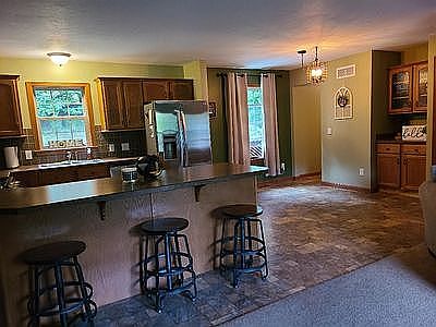 Welcome to 134 9 Acre Road! You will love this gorgeous one-story home located right by the river, just mins from a scenic overlook. This home spells ENTERTAIN & PRIVACY! Large family room with a warm, glowing, gas fireplace, indoor/outdoor sound system, and full-sized bar; PERFECT RETREAT OR CALL IT HOME! Open floor plan, spacious kitchen, island, 3 BR, 2 full baths & Oversize 3 stall garage. Tons of storage space with WALK UP Attic & 5ft crawl space full length of house. 800 SF deck, extra garage for your boat or storage needs! 1.03 acres with bath house, with water and electric hook ups for a camper just below the house and your own slip on the river. If you are looking for your next family home, or just a home away from home, this is the home for you!
