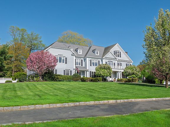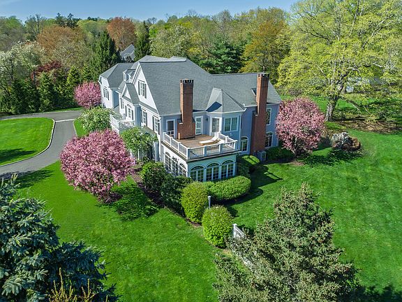 Elegantly situated in one of Fairfield County's most desirable scenic roads, this timeless Estate offers luxury and privacy on 2+acres of spectacular park-like grounds. This sophisticated residence showcases custom craftsmanship throughout, boasting tray ceilings, mahogany inlaid floors, 3 Fireplaces & oversized windows that flood the space w/natural light. Main level offers formal Living & Dining Rms w/exquisite detailing, built-in bar. Spacious gourmet Chef's KIT, featuring lovely breakfast Rm w/views of the covered patio & pool. An impressive Family Rm w/stunning atrium windows and a beautifully appointed coffered ceiling features a floor-to-ceiling stone fireplace and serene views of the amazing, private grounds. Additionally, Main level features a handsome library/comfortable home office, spacious fitness studio surrounded by walls of windows, a large mudrm + private Bedrm suite w/private entrance via French doors opening to a fieldstone patio, covered portico, and resort-like gunite pool & spa. Upstairs, the Primary Suite is a private retreat complete w/a cozy sitting Rm, fireplace, tray ceiling, custom walk-in Dressing Rms, and a private cedar sun deck. Spa-like primary ensuite bath includes radiant heated floors + luxurious steam shower. Add'l upper-level highlights include 6 ensuite BR's. A finished third floor adds an add'l 1,340 sqft. Finished LL w/dedicated exercise, entertainment & storage areas. 4 Car Garage w/charger. Minutes to Downtown! Approx. 1 HR to NYC.