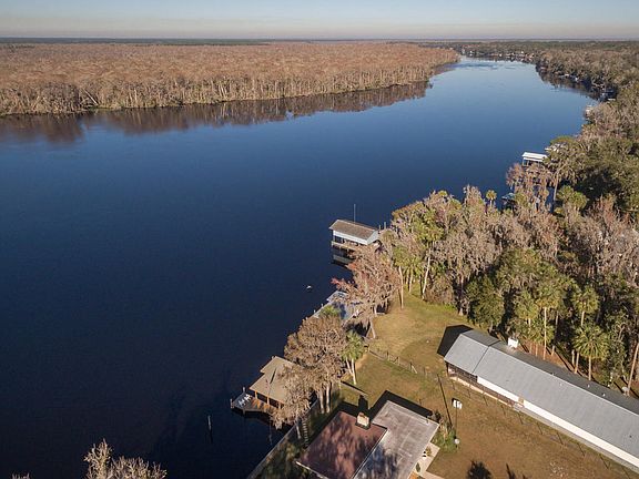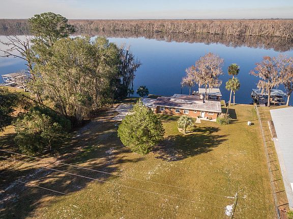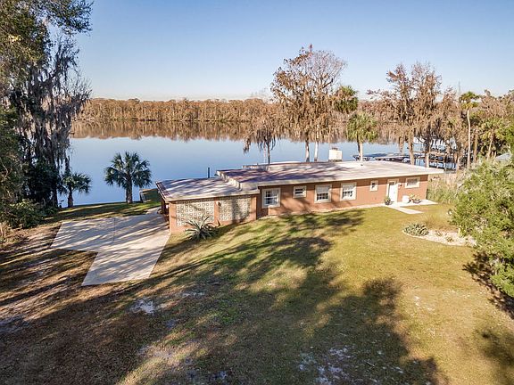 True Florida living will be yours at this coveted location! No need for a landscaper here because you'll be surrounded by lush natural landscaping and shaded by old oak trees. Everyday you'll wake up to an extraordinary view across the river and the Ocala National Forest. You'll never see any skyscrapers in your neck of the woods. Just pick up your fishing rod, get your boat down from the lift and enjoy a beautiful day on the water! This piece of paradise sits on almost an acre, is made of concrete block has 3 bedrooms, 2 baths and exposed beam ceilings. On those cooler evenings enjoy the spectacular sunset in front of the cozy fireplace or test your chef skills in the remodeled kitchen.