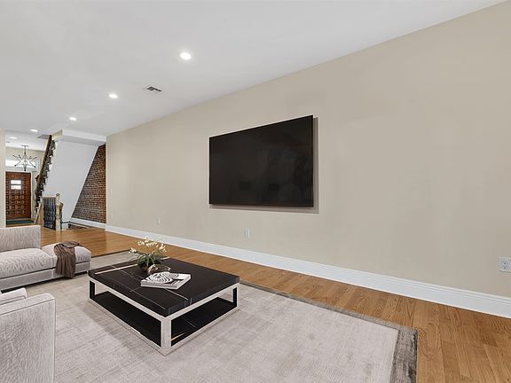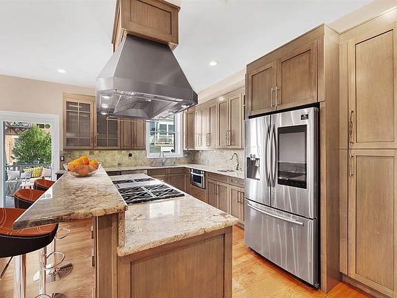 Simply Stunning! Move right into this Two Family stunner in the heart of Weehawken's most desired neighborhood. This legal 2 family home is being used as a majestic 1 family home. This stunning residence was stripped down to its brick foundation in 2014 and rebuilt. Everything in the home is new! No attention to detail was spared in this home. The sprawling floorplan boasts over 3100 sq ft, soaring ceilings and gleaming white oak floors. The sublime layout provides the ultimate in privacy offering separation of the living/entertaining spaces from the bedrooms. This magnificent home offers on the first floor entry a 2 story exposed brick wall, a large bedroom with bay windows, modern bathroom with rain shower fixture, an open concept living room and dining room. The state of the art kitchen with superior designed custom made cabinetry, granite countertops and top of the line appliances is perfect for bringing out your inner chef! Appliances include a 6 burner GE Monogram professional range with double oven, centered on an eight foot island with seating and Walk Out onto the sun deck which overlooks a beautifully designed patio and garden. As you walk upstairs you are greeted by sunlight flooding through the hallway skylight. The tranquil master bedroom is a calm and elegant space with bay windows, a custom walk-in closet and skylight. This room has the most flexibility: It can be converted to two bedrooms, there's existing plumbing and electrical wiring behind the wall, an en-suite master bathroom can be added. The 3rd bedroom has a Juliet balcony for your enjoyment. The Zen inspired bathroom complete with a soaking tub and stand-alone shower area. The fully finished basement comes with two outside entrances and was dug out to make it full height. Open floorplan, allowing for a large, unobstructed entertainment room. Plumbing is in place for a summer kitchen. There is a full bathroom next to the over-sized bedroom. The laundry room has a full sized side by side washer & dryer with sink and folding station. Transportation to NYC is minutes away. You can be in midtown Manhattan in approx. 10 minutes via either bus (walking distance), ferry or path train. Walk to shops, great restaurants and bucolic Reservoir Park, Ellsworth Park and Gregory Park. Very short drive to Trader Joe and Whole Foods. This charming tree-lined section of Weehawken borders Hoboken and Union City. Don't miss out!
