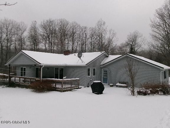 Private custom ranch with a park-like setting. Superior dwelling overlooks large private stocked pond. Upgraded mechanical systems and newer roof. Superior quality of construction is apparent throughout. Upgrades on the interior with hardwood floors, built-ins, Anderson windows, full finished basement with rec rm/ den/office, and tons of storage. Walkout the master bedroom onto the large rear covered porch and decks. Sit by the stone fireplace in the living room and enjoy nature at it's best. Attached two (2) car garage and detached 24' x 30' garage with workshop area. Surrounding market consists of Cooperstown, Sharon Springs, and Cobleskill. Close to 8 acres on two parcels (Roseboom & Cherry Valley).