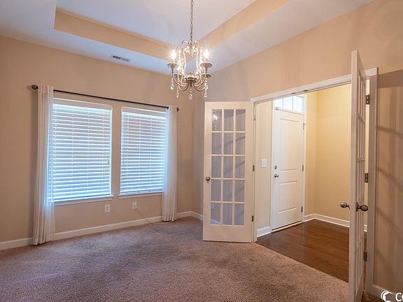 Welcome to your new paradise, a captivating 3-bedroom, 2-bath haven that has been impeccably upgraded. As you step inside, a grand foyer and stunning hardwood floors greet you, extending gracefully through the main living areas. The living room seamlessly connects to the spacious kitchen, creating an inviting open floor plan. The kitchen is a culinary masterpiece, featuring exquisite granite countertops, enhanced by under-cabinet lighting, and outfitted with stainless steel appliances. Privacy is paramount with the thoughtfully designed split floor plan, showcasing a generously sized master bedroom with an indulgent shower and an expansive walk-in closet. What truly sets this home apart is its outdoor living experience. In the front, a charming porch beckons, while in the back, a breathtaking covered patio offers uninterrupted views of the first tee of the Colonial Charters Golf Club and a serene pond. Imagine waking up to the tranquil sights and sounds of golfers teeing off on the first hole – this is a golfer's dream come true. Nestled in the desirable Palmetto Greens at Colonial Charters community, this home not only offers golf course splendor but also quick access to the beach, premier shopping, delightful dining options, and the full array of North Myrtle Beach's attractions.