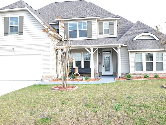 This beautiful 5 bedroom home has over 3100 sq. feet of living space. As you walk into the home you will notice the formal dining room off to your left. The living room and kitchen have an open concept. The living room features laminate wood flooring. Above the fireplace is set up for TV connection. Lots of natural light brightens the kitchen and front room. The kitchen has Stainless steel appliances and granite countertops with an island. Enjoy your coffee in the breakfast nook while looking out to your backyard. You can enter the mudroom through the two car garage and the laundry room is conveniently located off of the mudroom for those beach days! The third bathroom is located by the mudroom. Upstairs has four large bedrooms and a full bathroom. There is also a huge bonus room that can be used for a game room. A storage room is located next to the bonus room. The master bedroom is located on the main floor. It has trey ceilings with a ceiling fan. The master bathroom has a walk in shower separate from the soaking tub. There are dual sinks and an enclosed toilet room. The walk in closet is connected to the master bathroom. The large wooden fenced in backyard is a blank slate, ready for you to turn into whatever you want. This house is ready to move in. This home has vaulted ceilings and ceiling fans in most bedrooms. It is located close to Camp Lejeune back gate, MCAS New River, the beach, and a short drive to either Wilmington or Jacksonville.