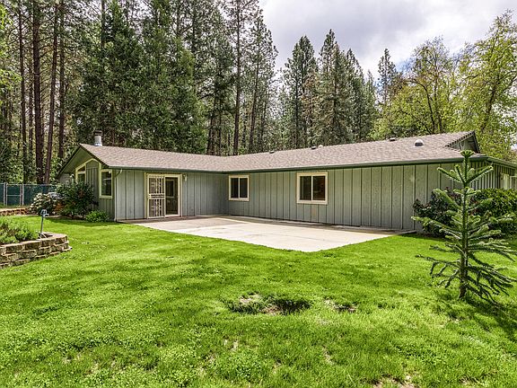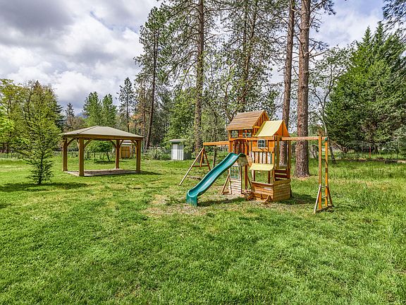 This beautiful home is tucked back on nearly 3 park-like acres among a mix of evergreen trees, wildflowers, and shrubs. The large kitchen, dining, and living areas flow seamlessly together and provide plenty of space for entertaining. The living room sports a vaulted ceiling, French doors onto the patio, and a built-in fireplace. The primary bedroom features a large walk-in closet and private bathroom with marble countertops and shower. Solar tubes throughout the home keep it bright and cheery year round. Outside, the large patio provides a space for hosting lively BBQ's or peacefully sipping morning coffee while enjoying the wildlife. Beside the lavender garden is a deer-fenced garden area, and the high-flow well provides plenty of water. The property also includes a chicken coop, gazebo, play structure, and several storage sheds, and there's plenty of room for RV parking. This lovely country home has easy access to town and won't last long, so book a showing today!