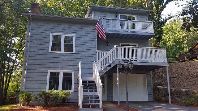Beautifully remodeled contemporary house in Collinsville ready to be called home! You can sit on the decks and feel like you are in a tree house! What fun! This home has a nice open floor plan! There is a fireplace in the OPEN living room. Nice den on the lower level also offer a fireplace. Shiny new granite counter tops and stainless appliances in the kitchen. Single garage attached and second detached garage with work area in the back. Many new updates include a new architectural roof, paint, 3 1/2 ton heat pump, high efficiency windows and sliding glass doors, deck, flooring, light fixtures & fans, vanities. Move-in ready! A must see! Square footage estimated per tax records.