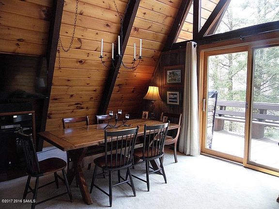 Beautifully maintained Adirondack Ski/Vacation home on a double lot with over 5acres.Nice and private location. An adorable and spacious chalet with the rustic charm of the mountains that is timeless. Three levels of living space offer plenty of room. The great room features an open floor plan with vaulted ceilings and a large wood burning fireplace. Three bedrooms and one and 1/2 baths. On the lower level you'll find a cozy recreation room with another fireplace that will welcome you as you walk in the door.2 large decks and a screened gazebo. Beautifully maintained and loved .Very efficiently built with oil hot air heat ,one car attached garage, utility/storage room with laundry. The location is 1hr North of the NY Capital region, 15min from both Lake George & Gore Mountain Ski Cen