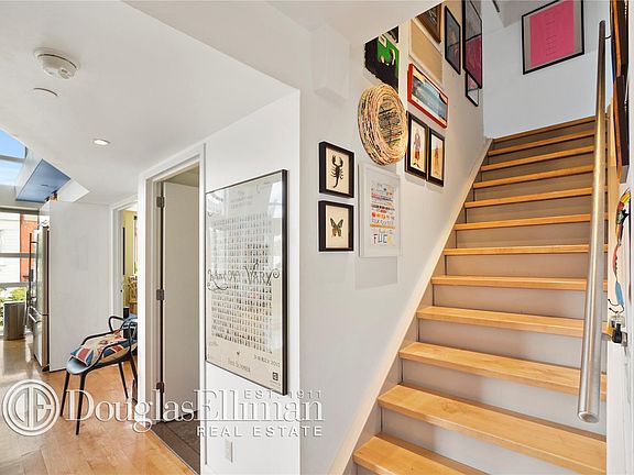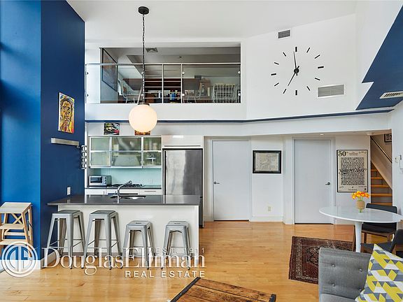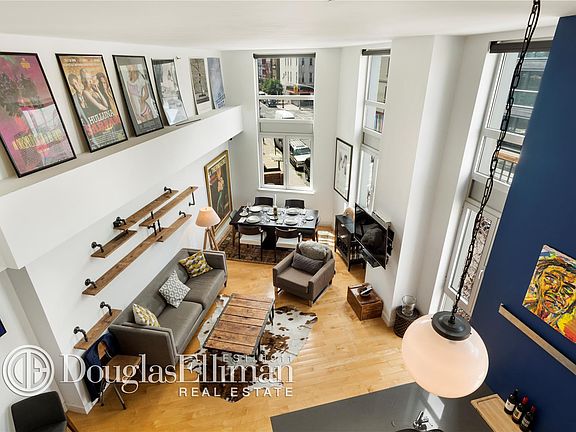 This sun flooded spacious duplex loft features two bedrooms, oversized windows, hardwood maple floors, and fabulous corner exposure. Top of the line finishes in the gourmet kitchen include stainless steel Jenn-Air refrigerator and Bosch stove, microwave and dishwasher, ample cabinet space, and Ceaserstone countertops. The bathroom is the epitome of luxury featuring Calcutta Gold marble walls and countertop, double vanities, glass-enclosed shower, and deep soaking tub. The apartment features electric blinds. thought, custom closets, washer/dryer and video intercom. The building features a common roof deck that offers panoramic city views and tax abatement runs through 2033. The Aria is located next to the best of Williamsburg's restaurants, markets and stores. It is also a short walk to the train.