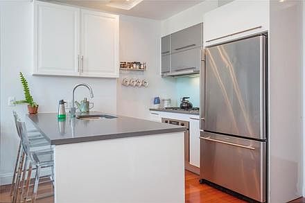 NOTHING LIKE IT! Private showings only, no open houses! A Soaring 3 Bedroom Duplex Sky House Featuring 2 Massive Gorgeous Baths both with Double Sinks. This Southern exposure apartment features 20 foot high ceilings, a 170 SF Terrace, 2 full bathrooms (1 with separate standing shower and massive jacuzzi tub), a Massive private bedroom suite with dual exposures, Impeccable built-in closets, a vented washer/dryer, and a fully-equipped modern kitchen with Bosch and Jenn Air appliances (willing to add built in fridge and granite color of your choice depending on offer), and of course central heat and air! Custom chandelier included in purchase. Both upstairs bedrooms have floor to ceiling glass walls with views of the entire Manhattan Skyline and custom made electric black out curtains. The Aria Condominium has won awards for it's innovative out of the box interior architecture. Every apartment in the building is unique and no two are alike. This apartment is every New Yorkers dream, to have a house in the city that feels nothing like your typical NYC apartment. This entire unit was completely renovated in 2014 with all custom materials. Unit has it's own private terrace as well as a gorgeous common roof deck for this beautiful boutique condo building to share.